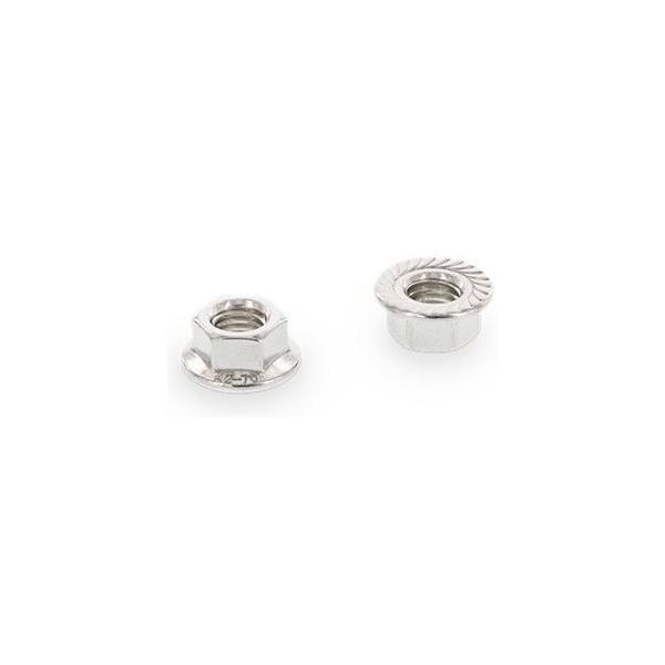 M-gevind. Hex-møtrik med flange med låsetænder i henhold til DIN 6923 (ISO 4161).