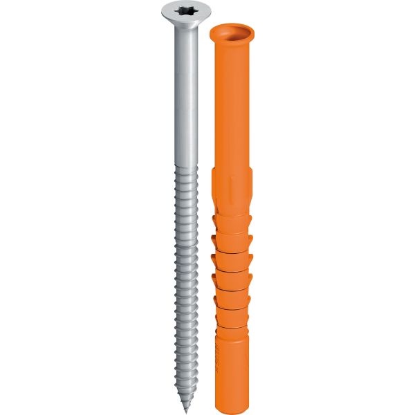 Specielt designet til letbeton. Den specialdesignede muffe giver høj styrke og holdbarhed i letbeton SDP-S har et forsænket kranium og uden krave, derfor er dette velegnet til montering af træ. Skruen har TX40-drev for nem og hurtig installation. Bemærk: Forbor hullet 10 mm dybere end stikkets længde.