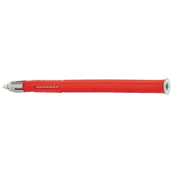 Med forsænket galvaniseret skrue. Bruges indendørs ved installation af køkkenudstyr og træpinde i porøse stenmaterialer uden forboring. I leca er det dog nødvendigt at forbore med 1 mm underdimensioneret. Forbor fastgørelsesmaterialet, slå stikket med en hammer, drej maksimalt seks omdrejninger, og stikket udvider sig som en knude.