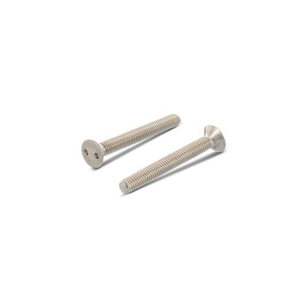 Sikkerhedsskrue med M4 gevind, to-huls drev og forsænket hoved. Sikkerhedsbeslag PIN-kode - kan kun håndteres med specielle bits. Beskyttelse mod utilsigtede tyve, fordi et specielt monteringsværktøj forhindrer dem i let at blive løsnet. Leveres i 100-pak.