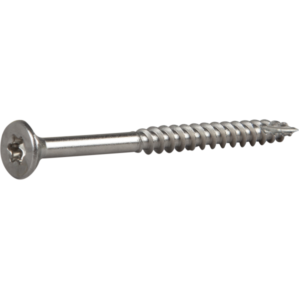 Træskrue ESSDRIVE er beregnet til de fleste installationer i materialer som spånplader, træ, plast, fittings og stik. Skruen er lavet af rustfrit stål A2 til brug i udsatte miljøer såsom marine miljøer. Den er udstyret med TX beslag / bits. Skruen har en patenteret spidsform, der giver en hurtig fastgørelse til træet og en patenteret hovedform, der minimerer flishugning og giver et pænt slutresultat. På skruer 70 mm og længere er der et ekstra fræsegevind direkte efter det sædvanlige trægevind, dette for at lette installationen af længere og grovere skruer. Hovedet er udstyret med skæreriller, der skærer træfibrene og fordyber skruen med en glat overflade uden nåle. Hovedet fungerer også godt i forsænkede beslag, da det ikke har fremspringende ribber. ESSDRIVE kræver lavt anlægstryk. Skruen opfylder CE-kravene i henhold til EN14592. Anbefalet hastighed: 400-1200/min.