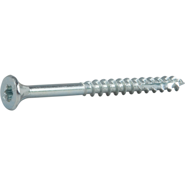 Træskrue ESSDRIVE er beregnet til de fleste installationer i materialer som spånplader, træ, plast, fittings og stik. Skruen er lavet af slukket hærdet stål med poleret galvaniseret finish, til brug i indendørs miljøer. Den er udstyret med TX beslag / bits. Skruen har en patenteret spidsform, der giver en hurtig fastgørelse til træet og en patenteret hovedform, der minimerer flishugning og giver et pænt slutresultat. På skruer 70 mm og længere er der et ekstra fræsegevind direkte efter det sædvanlige trægevind, dette for at lette installationen af længere og grovere skruer. Hovedet er udstyret med skæreriller, der skærer træfibrene og fordyber skruen med en glat overflade uden nåle. Hovedet fungerer også godt i forsænkede beslag, da det ikke har fremspringende ribber. Skruen opfylder CE-kravene i henhold til EN14592. Anbefalet hastighed: 400-2000/min