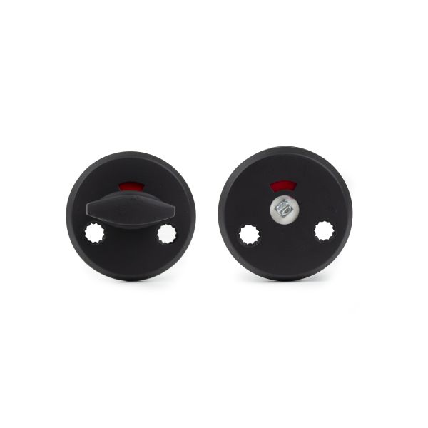 Toiletbeslag af aluminium. Leveres med skruer til gennemgående fastgørelse. 2 stk M5x65 mm tryksskruer samt 2 stk M5 hylsemøtrikker. Passer til dørtykkelse 38-42 mm.