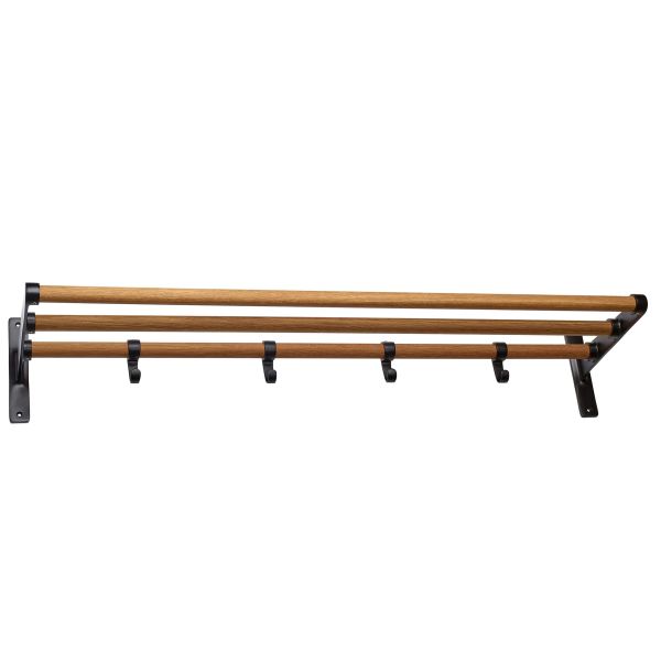 Hatthylde med konsoller og kroge af aluminium. Rør af plastovertrukket stål eller træ. Leveres umonteret. Udstående 270 mm.