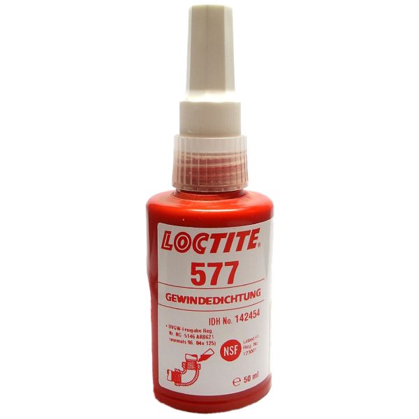 Loctite® 577 er beregnet til låsning og tætning af metalrør, rørforbindelser og andre gevindsamlinger. Produktet giver en øjeblikkelig lavtrykstætningsfunktion til rør og rørfittings i metal. Det hverken kryber, svinder eller fragmenterer. Det har fremragende kemisk og termisk styrke og løber ikke efter påføring.
