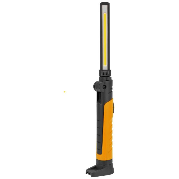Leddelt genopladelig LED-lampe på 700 lm i slankt design. Med greb i stødsikker ABS plast og gummi og bundplade med meget stærke magneter. Trinløs dæmpbar arbejdslampe maks. 200 lm.