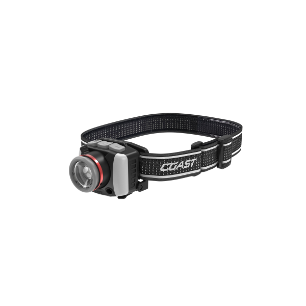 Varenr.: 4061239Værsgo – her er et glimrende eksempel på en pandelampe fra COAST; FL95R 1200 lumen, 9 lysstyrkeniveauer, 3 LED-farver, spotlys, hukommelsesfunktion, dynamisk og reflekterende pandebånd.