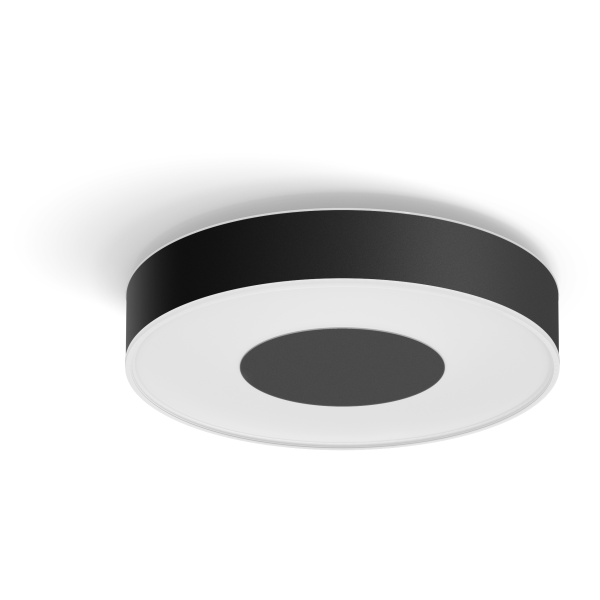 Philips Hue Xamento 929003526301 Loftslampe. Skab nyt liv i dit badeværelse med Philips Hue Xamento, en serie lamper der er særligt udformet til at give dig fantastisk lys i badeværelset. Denne runde loftslampe i sort har et subtilt og moderne design, der passer ind i alle hjem. Den giver både et dekorativt opadrettet lys og en bred, jævn nedadrettet belysning, der nemt lyser op i mellemstore rum. Med White and Color Ambiance kan du tilpasse belysningen til hverdagens rutine og hver lejlighed. Vælg mellem 16 millioner farver og juster lysstyrke, temperatur og nuance. Brug forskellige lysscener for at forvandle badeværelset til et luksuriøst spa, når du vil nyde et bad på en afslappende søndag, og lad lyset fra en tropisk ø hjælpe dig med at slappe af efter en lang dag på arbejdet. Den rette belysning er særligt vigtig i de skiftende og mørke årstider i Norden. Brug farvet lys til at skabe den rette stemning, vælg køligt hvidt lys for at give dig energi en mørk vintermorgen, og indstil en varm gylden tone til dine badeværelsesrutiner om aftenen, inden du går i seng. Xamento er IP44-klassificeret, hvilket gør den mod vandstænk.