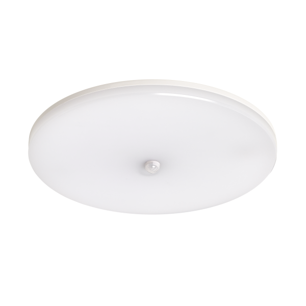 Slankt loft- og vægplafond udstyret med LED, som styres via en PIR-sensor med op til 6 m detekteringsområde. Sensoren har justerbar udløbstid og følsomhed. Armaturen kan tilsluttes som master, hvilket gør at den kan styre andre armaturer, maks. 200 W inklusive master. Flere master-armaturer kan installeres parallelt, forudsat at armaturerne har samme gruppeafbryder og ikke overstiger 200 W i alt. Plafonden er udstyret med en hurtigkoblingsplint og dobbelte knockouts til overflademonteret kabel og videreforbindelse. Til indendørs brug.