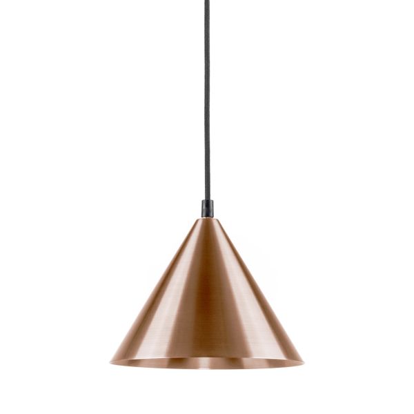 Pendelarmatur med rundstrålende lysfordeling. Fås også i messing eller kobber og leveres komplet med sort stofkabel. Velegnet til bordarmaturer, caféer, barer osv.