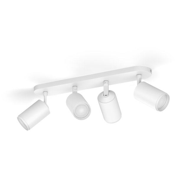 De leveres med medfølgende GU10-pærer med White and Color Ambiance, som tilbyder belysning i alle farver eller nuancer af hvidt lys samt øjeblikkelig trådløs dæmpning.