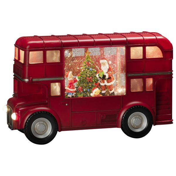 Konstsmide 4260-550 er en vandfyldt rød bus med en nisse. Timer 5 t. 3xAA.