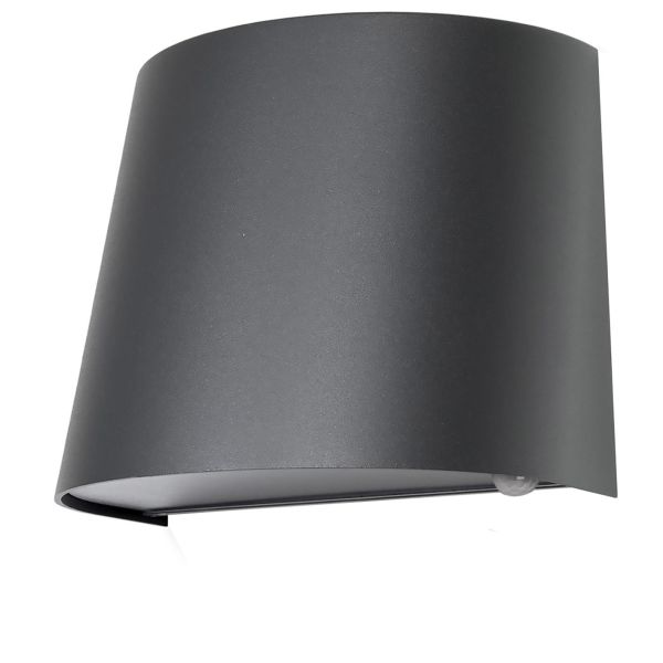 Væglampe (vægarmatur) med afblændet nedadrettet lys. Anodiseret og pulverlakeret aluminiumramme, blændskærm i PET-G. Armaturet er udstyret med en LED-enhed og en PIR-sensor. Farvetemperaturen er varm hvid, og lysfordelingen peger nedad. Bagpladen har to indgange og udgange samt en hurtigkoblingsplint (terminalblok). Velegnet til brug i både private og offentlige miljøer.