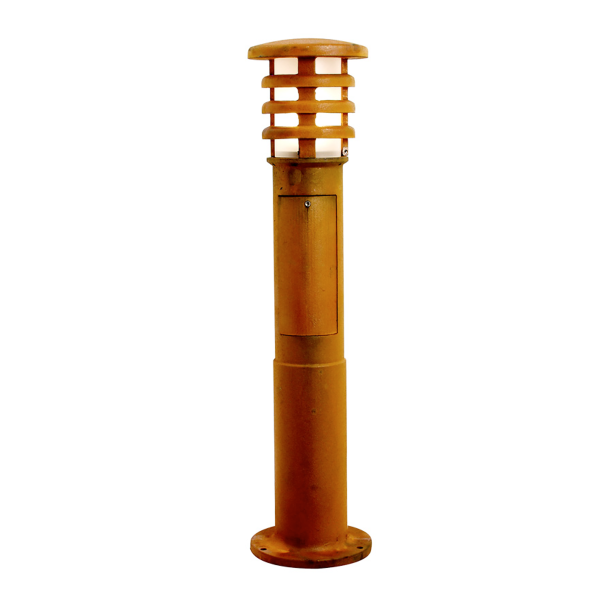 Pælen med rotationssymmetrisk lysfordeling (rotationssymmetrisk lysdistribution), fremstillet i meget kraftigt støbejern og med frostet akryl-cylinder. Armaturet er udstyret med en udskiftelig LED-enhed (LED-modul), alternativt E27-sokkel. Pælen har tilslutningslukke og en rund fodplade med tre bolthuller.