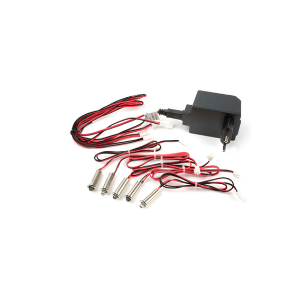 Et LED-sæt på 12V/DC 5x0,2W. Trafo.