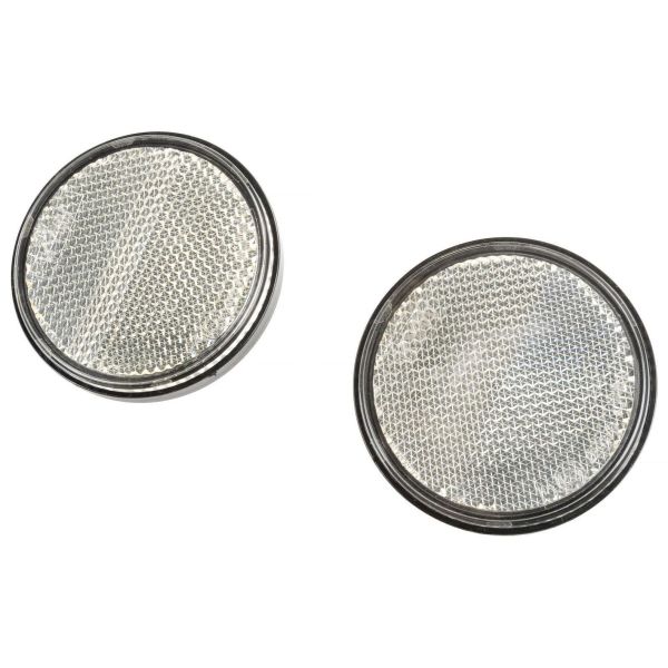 CJ 547179 Reflex til trailer. Rund, hvid reflektor lavet af akryl/ABS-blanding. Monteret med skrue til montering på bagsiden. Sælges i en pakke med 2.