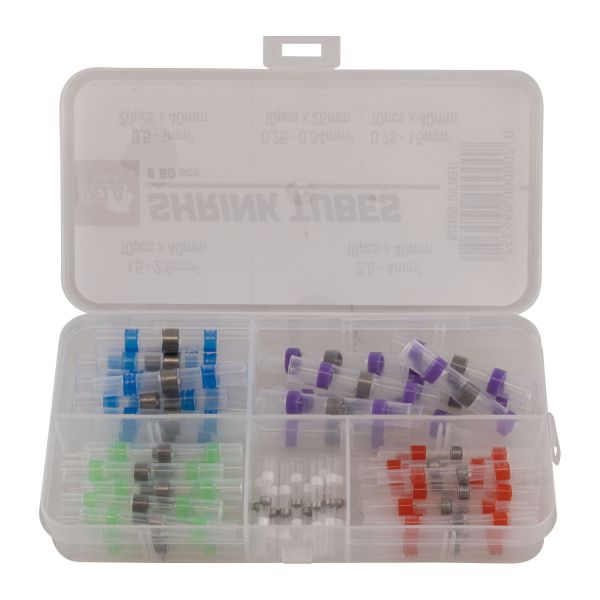 Sættet indeholder krympeslanger med loddekerne, som giver stærke og holdbare forbindelser uden behov for separat loddeværktøj eller loddekolbe. Det gennemsigtige materiale gør det nemt at kontrollere forbindelsen under arbejdet. Leveres organiseret i en praktisk opbevaringsboks.