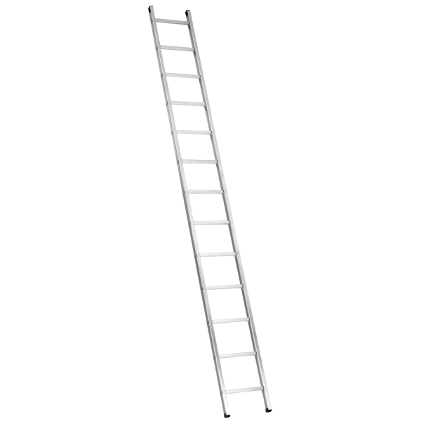 Enkelt stige, 430 mm bred, udført i kraftig I-profil i aluminium og med skridsikker gummibeskyttelse. Stigen kan udstyres med trinudvidelse 204-1, hvilket giver den en bredere og sikrere base.