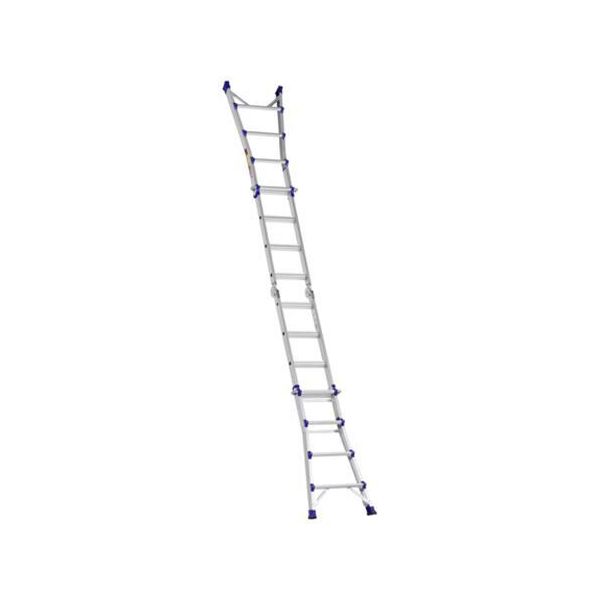 Varenr.: YB19722Multiladder lavet af anodiseret aluminium. Kan bruges som enkeltstige eller fritstående stige både på ujævne overflader og på trapper. Har en samlet længde på 420 cm og en bundbredde på 48 cm. Vejer 12,5 kg.