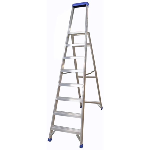 Stabil og robust trappestige i aluminium, der kan modstå hård brug. Stigen har hydraulisk nittede trin, en stabil platform og en hylde. Platformens dimensioner er 375 x 250 mm, og trindybden er 81 mm. Stigen er udstyret med plastfødder, der giver god glidebeskyttelse og samtidig beskytter overfladen.