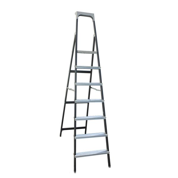 Trappestige lavet af aluminium. Trinets aluminiumsprofiler er lakeret, hvilket giver trinene en mere holdbar overflade, der ikke sorte hænderne. Stor platform og brede trin gør det sikkert at bruge. Trinene har en praktisk værktøjshylde med opbevaringsrum. Trindybden er 81 mm, og buen er 600 mm høj. Trinene kan udstyres med trinudvidelser 204-10, hvilket giver den en bredere og sikrere base.