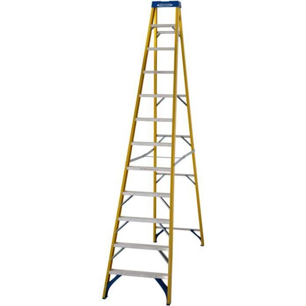 Glasfiberstige, der ikke leder elektricitet og er godkendt til 30.000 volt. Glasfiberstigen er også gnistfri, hvilket øger sikkerheden, når du arbejder på steder med eksplosionsfare. Andre fordele ved glasfiberstigen er, at den ikke sorte hænderne, og at den ikke leder koldt, hvilket øger komforten.