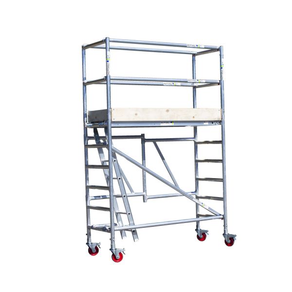 Robust og let at installere håndværksstillads til arbejde både indendørs og udendørs. Stilladset er komplet på alle niveauer og indeholder alle komponenter, der kræves for at overholde AFS 2013:4. Justerbare hjul med gummiskinne, der sikrer, at stativet også er stabilt på et ujævnt gulv. Justerbarhed op til 15 cm. Gummibanen gør stilladset også velegnet til indendørs brug. Teleskopiske justerbare stabilisatorer. Fås i komplette pakker med platformshøjde op til 5.8m. Maksimal belastning 250 kg pr. platform, hvilket gør den ideel til topersoners arbejde. Opfylder AFS 2013:4