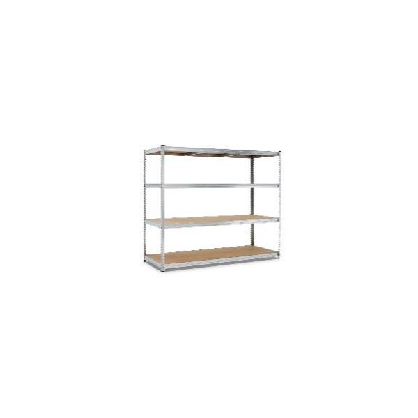 Reolstativ til lager, værksted og opbevaringsrum. Nem montering – helt uden skruer, leveres usamlet, stolper af varmforzinket plade og 4 hylder af MDF-plade. Maks. kapacitet pr. hylde 400 kg. Mål: H1800 x B1800 x D600 mm.