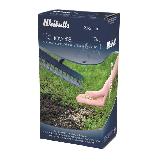 Weibulls Renovera er en græsfrøblanding til slidte og beskadigede græsplæner. Den indeholder hurtigtspirende kvalitetsgræsfrø, som sørger for, at din græsplæne igen bliver grøn og tæt, frodig og ensartet efter slitage.
