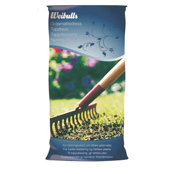 Varenr.: 3128945Dressing blødgør hårde græsplæner og hjælper sandet jord med at holde på fugten. Dressingen indeholder både sand og muld, hvilket fremmer græssets vækst – der dannes flere nye skud.