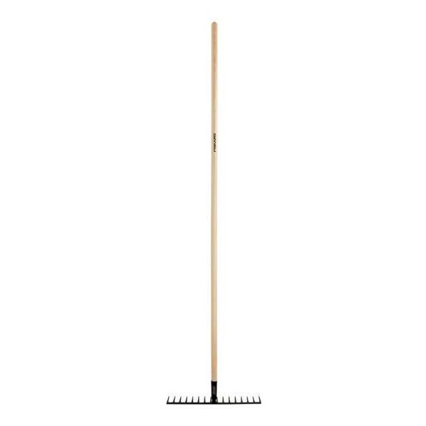 Varenr.: 2470048En rive med 16 lige pløkker, lakeret træhåndtag og hoved i hærdet stål.