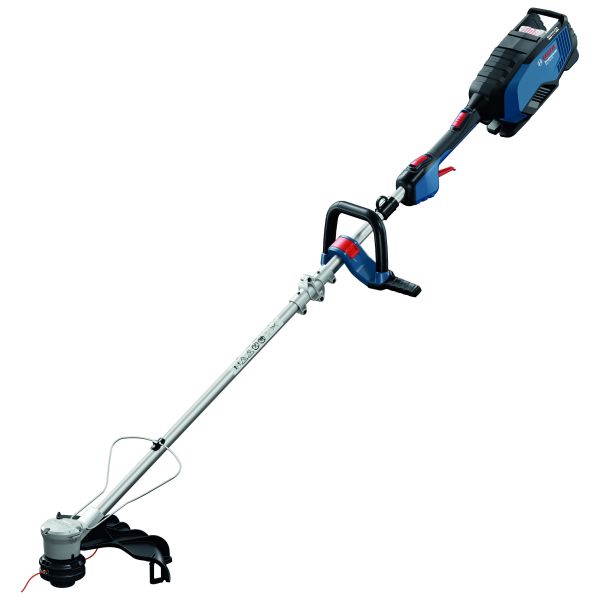 Bosch GRT 18V-40 Græstrimmer. GRT 18V-40 Professional er en trådløs græstrimmer med en kraftfuld 600 W børsteløs motor, som kan opnå en maksimal hastighed på 5 300 omdrejninger pr. minut på mindre end et sekund. Dens velafbalancerede design og et 360° D-formet håndtag giver mindre anstrengelse og udtrætning under arbejdet. Et håndtag med dobbelt funktion giver en sømløs overgang fra trimning til kantklipning. Det elektroniske hastighedsregulering holder automatisk hastigheden konstant under skiftende forhold. Med den variable hastighedsregulering kan du justere motorhastigheden efter rådende arbejdsforhold, hvilket optimerer drifttiden og lydniveauet.