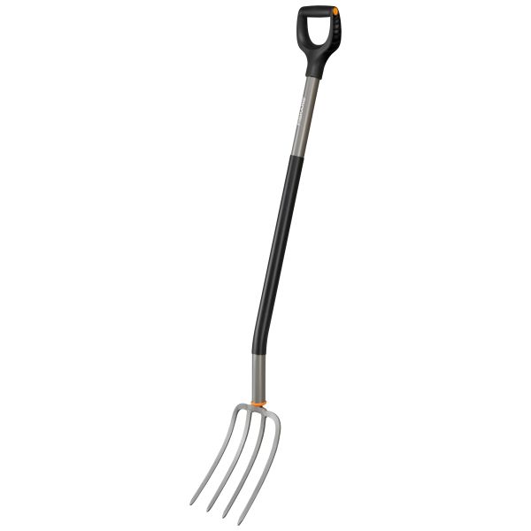Er en havegaffel med smedede pinde, ideel til at bryde jord op. Akslen har en ergonomisk løftevinkel for at minimere belastningen på ryg og skuldre.