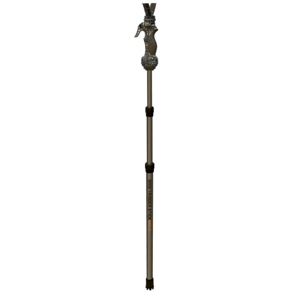 Primos Trigger Stick Monopod er et let og smidigt skydestøtte, der er nem at have med. Et ben reducerer effektivt rystelser, samtidig med at man hurtigt følger bevægelige mål. Højden justeres med et enkelt tryk på en knap, og et drejeligt hoved med fleksible ben gør det muligt at vinkle, dreje, hæve og sænke, præcis som man ønsker.
