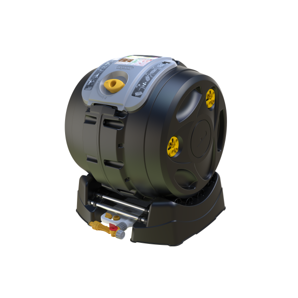 Havekompost med 100 l beholder på hjul for nem omrøring af indholdet, inklusive beholder med direkte tilslutning til en haveslange for direkte fordeling af den fremstillede flydende gødning. Udvind din egen kompost og flydende gødning på kun 6–8 uger.