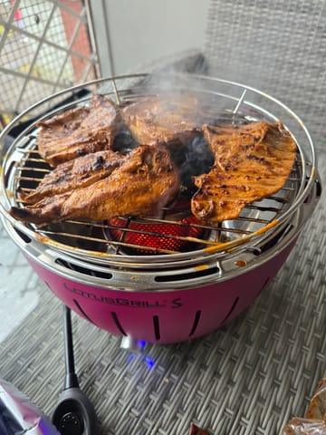 LotusGrill med sit unikke design og funktion er stort set røgfri! Fedtet drypper ikke på kulene under tilberedningen og derved undgår den vigtigste kilde til røggenerering og dannelse af farlige stoffer.