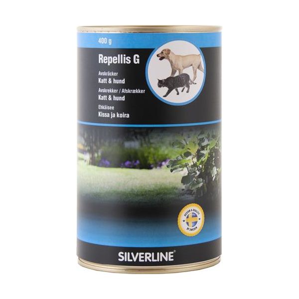 Silverline Repellis G er et granulat, der afskrækker katte og hunde fra at færdes på behandlede overflader. Repellis G er velegnet til alle typer overflader, f.eks. blomsterbede, stauderabatter og beplantninger. Virkningen varer op til 3 måneder, men effekten reduceres efter regn. For bedst mulig og langvarig effekt bør behandlingen gentages, når virkningen begynder at aftage. Ikke generende lugt.