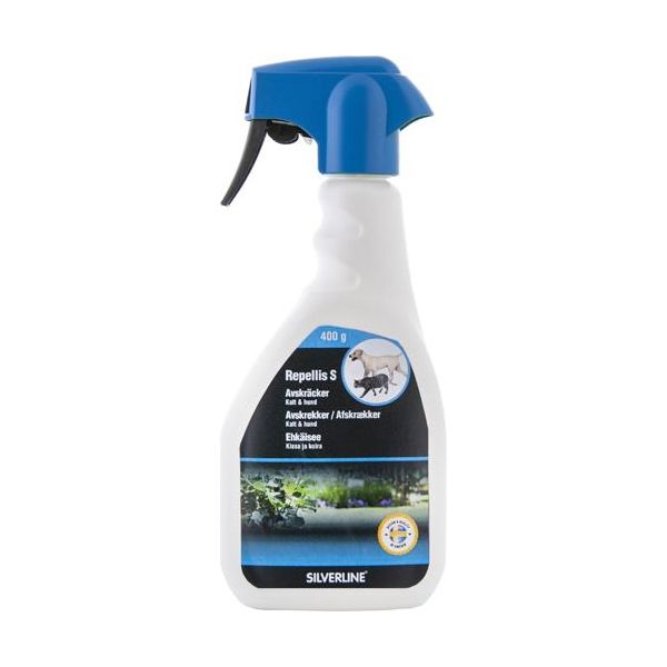 Silverline Repellis S er en spray, der afskrækker katte og hunde fra at markere territorium på overflader udendørs eller indendørs. Kan bruges udendørs på overflader som f.eks. hegn, hjørner på bygninger, stolper, postkasser og indendørs på f.eks. senge, sofaer og lignende møbler. Afskrækningsmidlet har ingen generende lugt. En sprayflaske rækker til ca. 165 m².