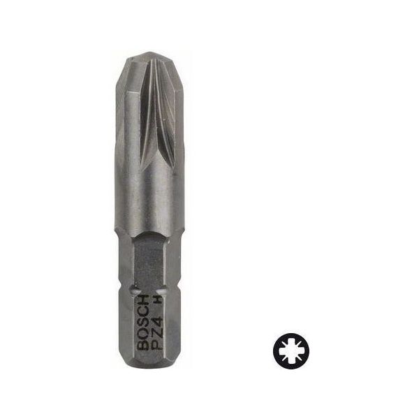 Ekstra hårde PZ4 krydsskruebits på 32 mm. Udvendig 1/4" sekskantaksel ISO 1173 C6.3.