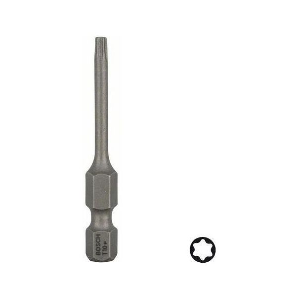 Ekstra hårde T10 Torx-skruvbits på 49 mm. Udvendigt 1/4"-sekskantskaft ISO 1173 E6.3.