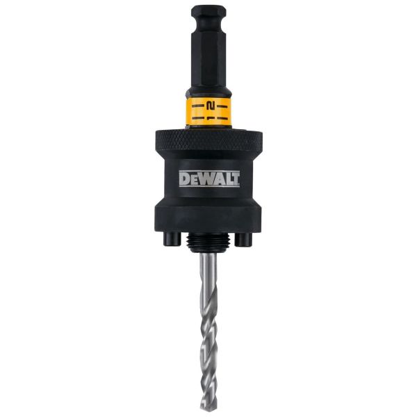 DEWALTs Rapid Load hulsaveholder med quick-change-system eliminerer frustration hos slutbrugeren. Den unikke hurtigskiftemekanisme muliggør værktøjsfri udskiftning af centerbor og hulsav. Med universel kompatibilitet er der ikke behov for adaptere. DEWALT Rapid Load hulsavsholderen har et enhåndssystem for overlegen brugervenlighed. Slidstærk og optimeret til byggeri- og installationsopgaver. Hver hulsavsholder leveres med et HSS-centerbor i høj kvalitet.