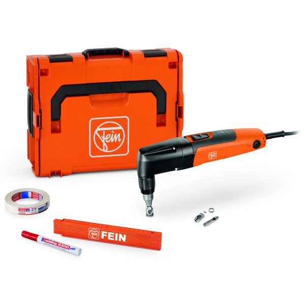 BLK 1.6 E er en universel nibler til tag- og facadekonstruktion. Nøjagtige snit i metalplade, profiler, trapezplader og bølgeplader op til 1,6 mm. Inklusive ekstra udstansnings- og matrice-sæt til trapezplader og bølgeplader, permanent markør, maskeringstape og tommestok.