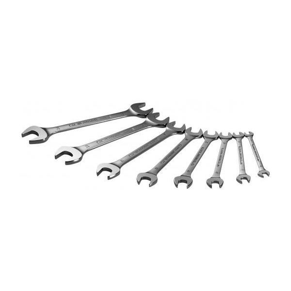 Et U-nøglesæt i 8 dele med en grebsbredde fra 8 mm til 24 mm.