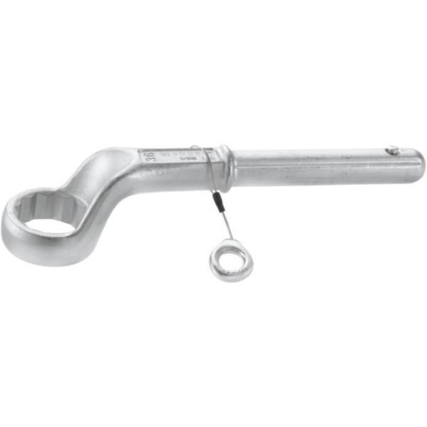Holdbar ringnøgle, der er bøjet for stærk tilspænding. Udstyret med SLS sikkerhedsbeslag.