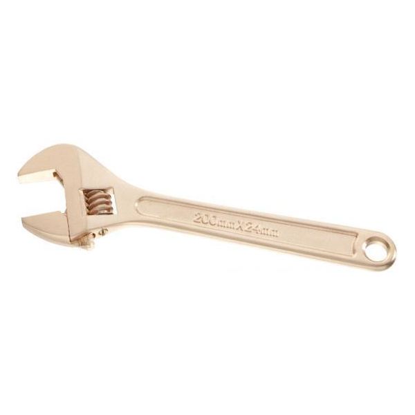 Varenr.: 1912885Skruenøgle med speciel gnistfri og ikke-magnetisk kobber-berylliumlegering. Har en samlet længde på 300 mm og en maksimal grebslængde på 36 mm.