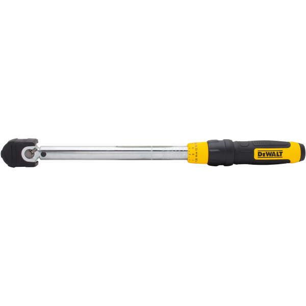 DEWALT DWMT75463-0 er en 3/8" momentnøgle med gummihoved til beskyttelse under brug, hvis momentnøglen tabes. Der medfølger et beskyttelsesetui til nem og sikker transport og opbevaring af DWMT75463.