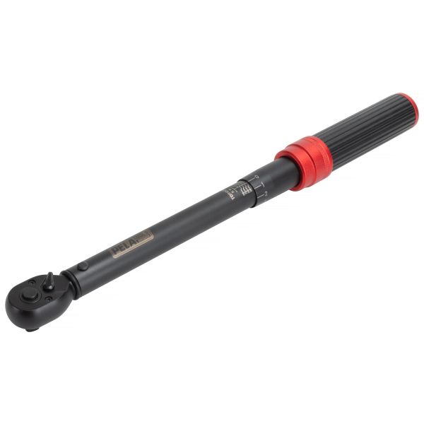 Pela 543482 momentnøgle med 3/8" fatning. Justerbart drejningsmoment mellem 20-100 Nm med nøjagtighed/interval 1,0 Nm.