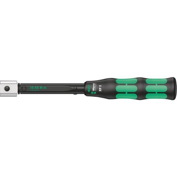 Wera Click-Torque XP 2 er en momentnøgle til skærværktøjer med en forudindstillet momentværdi på 10 Nm. Forudindstillet drejningsmoment til alle applikationer, hvor konstant og gentageligt drejningsmoment er påkrævet. Momentværdien kan ændres inden for måleområdet. Den robuste udløsermekanik giver et tydeligt hørbart og taktilt signal, når det indstillede drejningsmoment nås. Leveres med holder til skærværktøj med udvendig firkant på 9x12 mm.