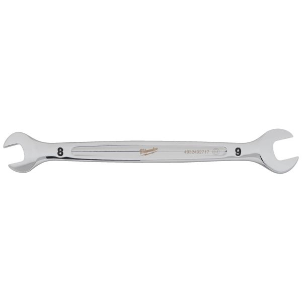 Milwaukee dobbelt ringnøgle med rundt L-profilhåndtag og smalt hoved for bedre adgang. Blækstemplede størrelser og kromfinish til rustbeskyttelse.