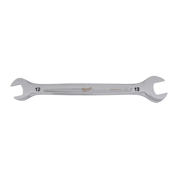 Milwaukee dobbelt ringnøgle med rundt L-profilhåndtag og smalt hoved for bedre adgang. Blækstemplede størrelser og kromfinish til rustbeskyttelse.
